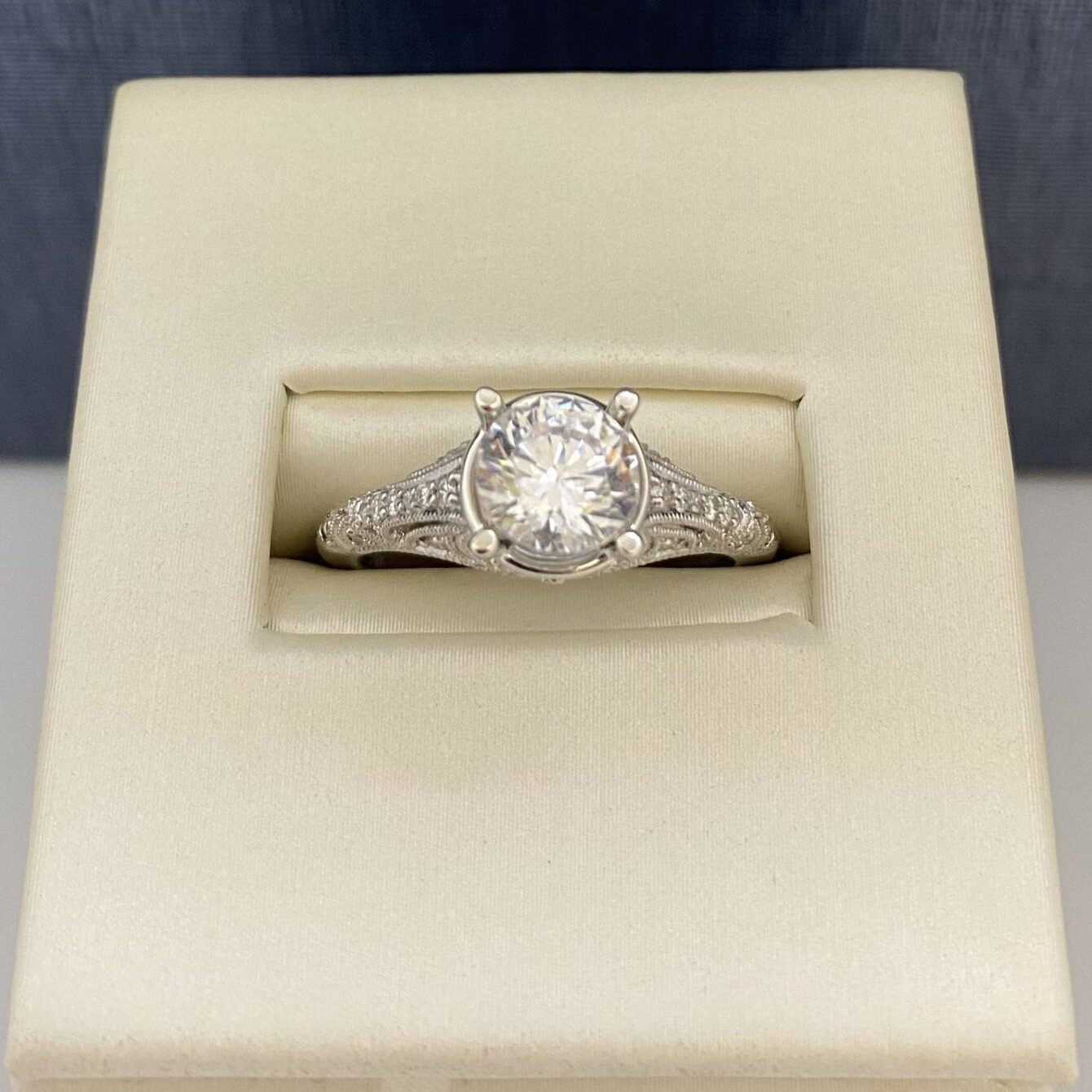 14k White Gold, Milgrain Detail, .19 ctw dia, 3.2g, price excludes cost of center stone, B03676