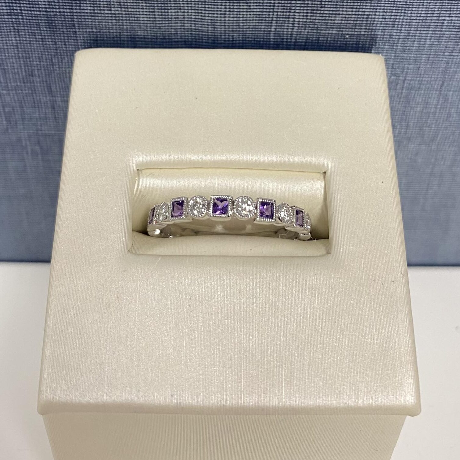 Home » Browse Jewelry » Amethyst and Diamond White Gold Stackable Ring