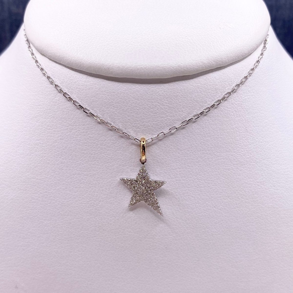 14kwy, Asymmetrical Star Pendant, 77 Dias=0.16ctw, 16″ Cable, 1.8g, H06633