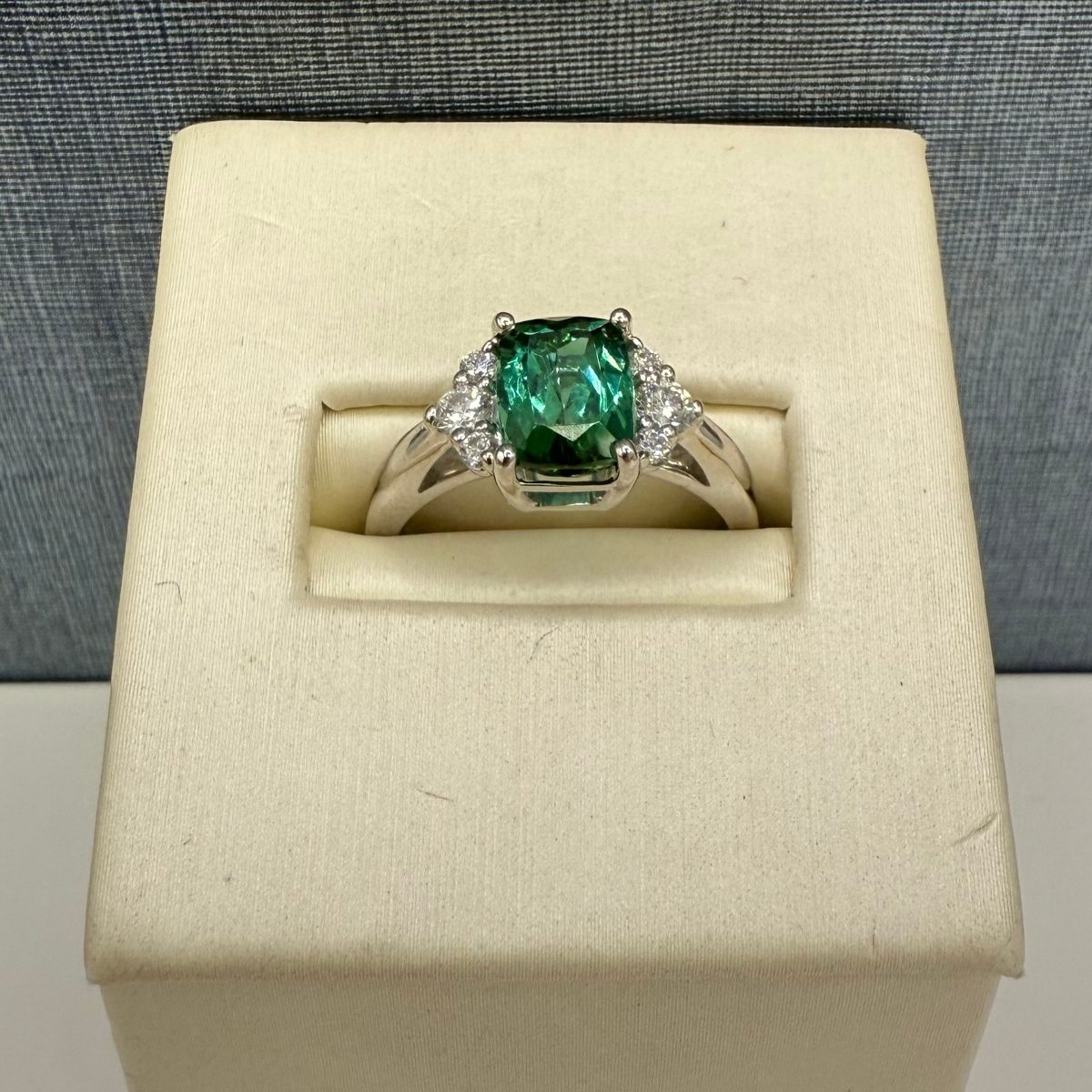14kw, 6Dias=0.28ctw, Elongated CU Cut, Green Tourmaline=1.93ctw, 4.7g, D03698