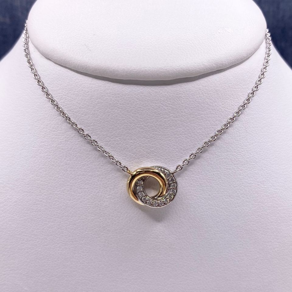 S/S, Gold Plated, 16-20″ Cable Chain, 4.7g, Interlocked Circles, Crystals one One Side, Z02499