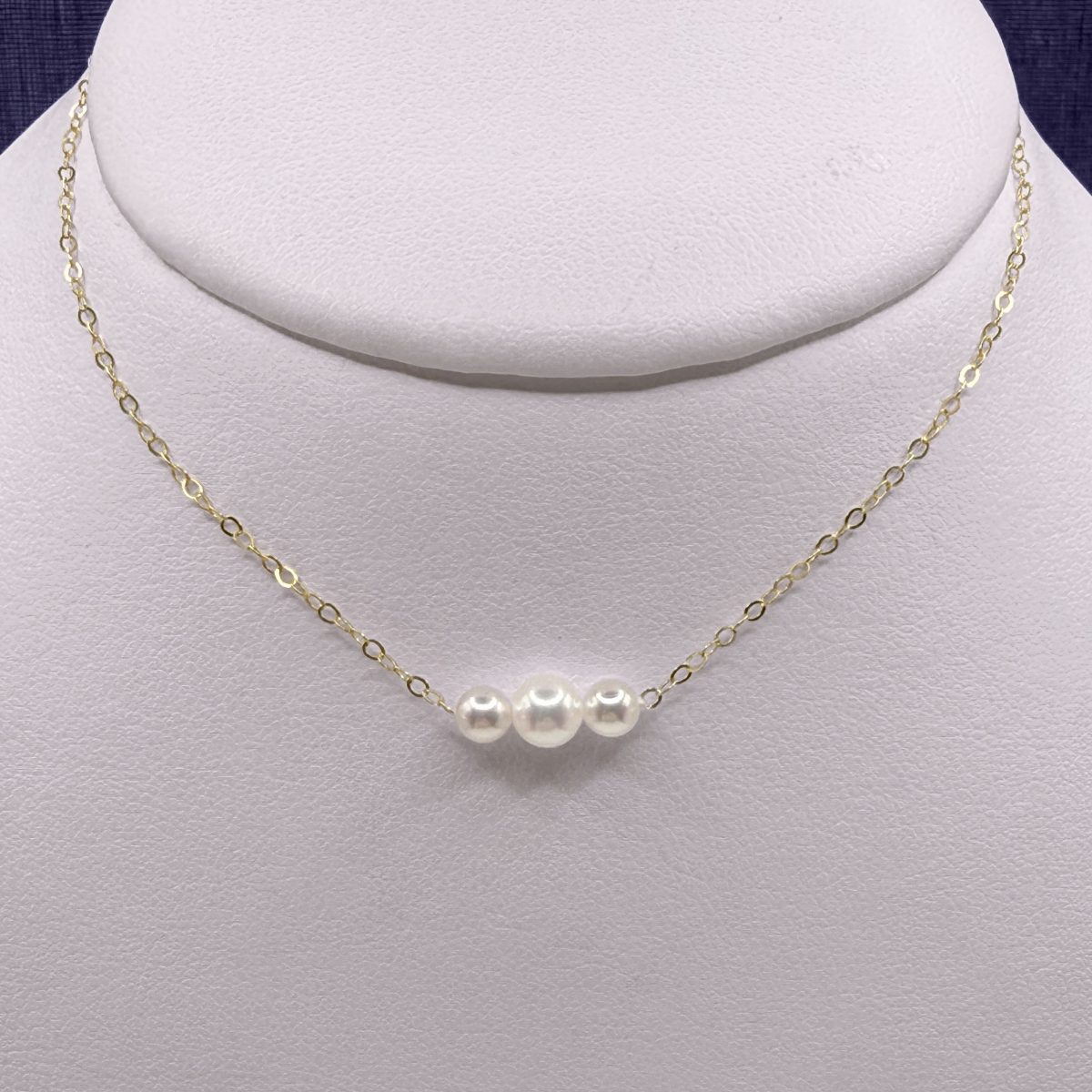14ky, 3 Graduated Akoya Pearls, 16″ Cable, Add-A-Pearl, O01726