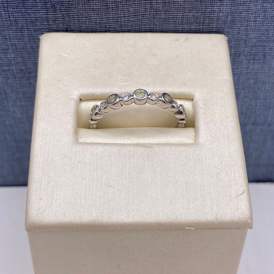 14kw, 5 Peridot=0.21ctw, 6 Dias=0.09ctw, 1.9g, Bezel Set, Q01443