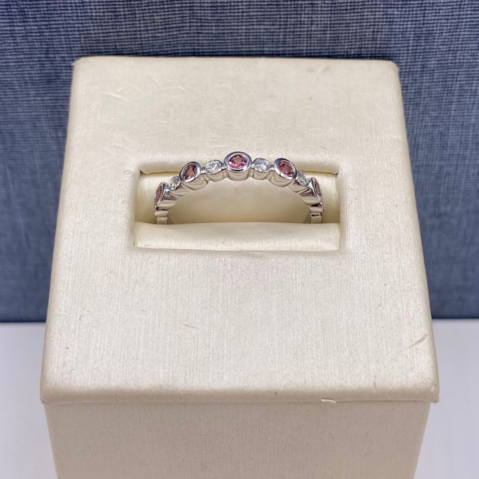14kw, 5 Pink Tourmaline=0.20ctw, 6 Dias=0.09ctw, 2.0g, Bezel Set, Q01444