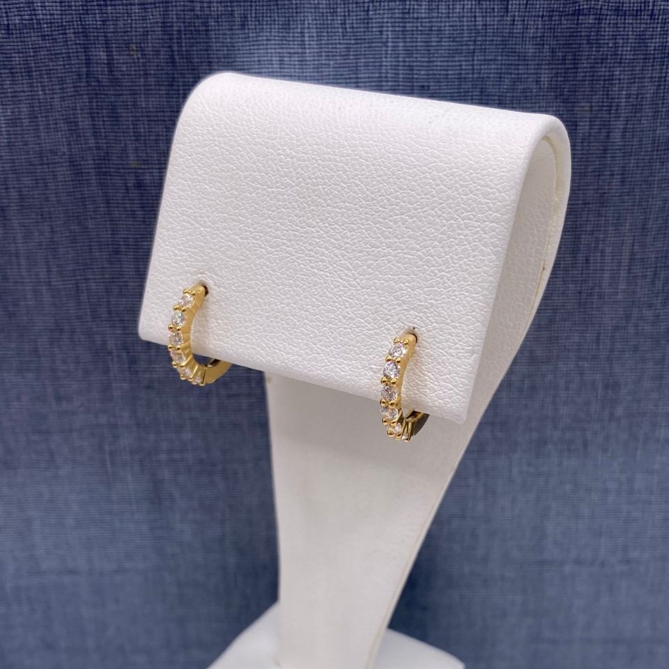 S/S, Gold Plated, 10 Crystals, Prong Set, 1.6g, Huggies, SS1275