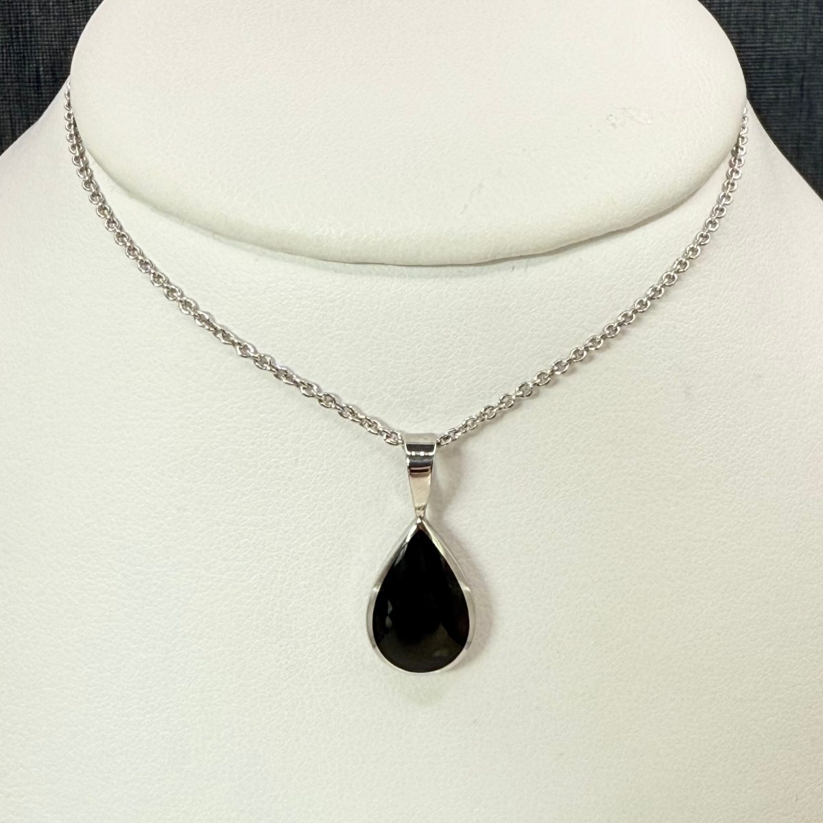SS, Pear Shape Onyx, Inlaid, 2.1g, 18″ Cable Chain, SS1232