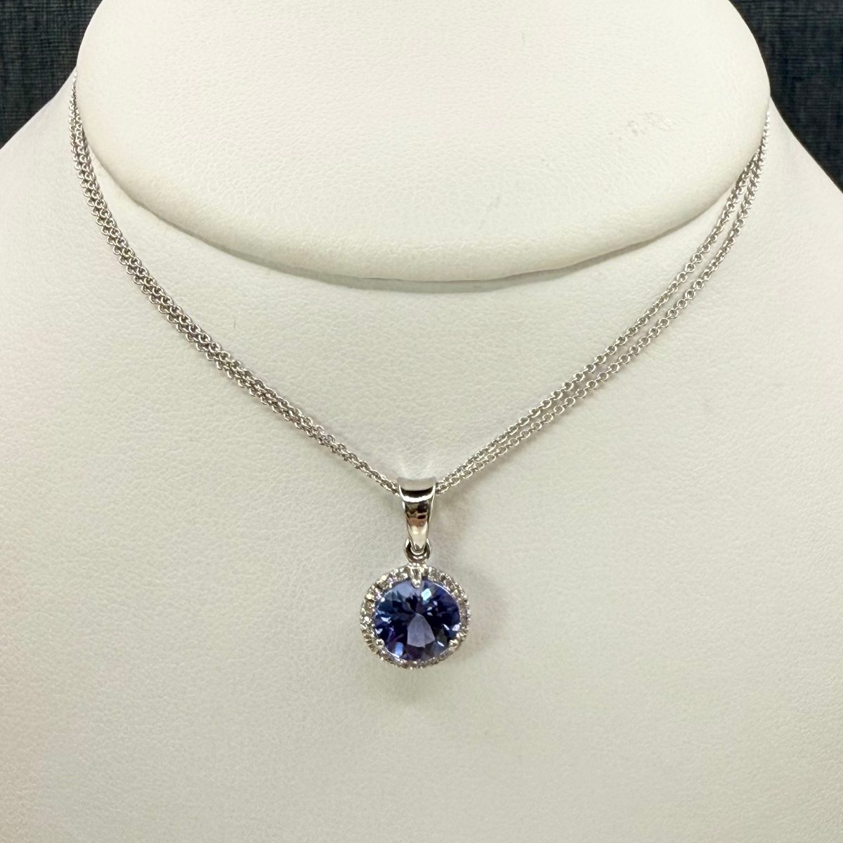 14kw, Brilliant Center Tanzanite=1.23ctw, Dia Halo=0.09ctw, 1.04g, chain not included, H06209