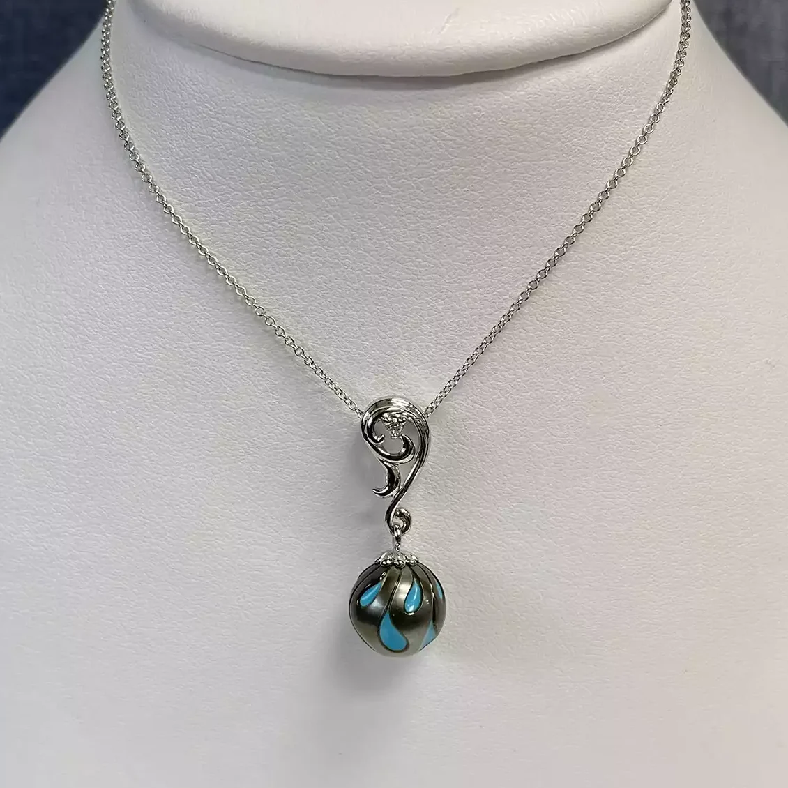 Home » Browse Jewelry » Turquoise, Pearl, and Diamond Necklace in White Gold