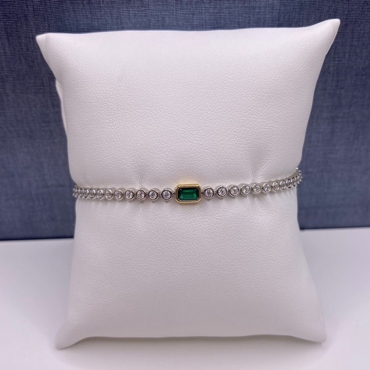 S/S, Gold Plated, Bezel Set BR and BG White and Green Crystals, 7″, 7.5g, SS1258