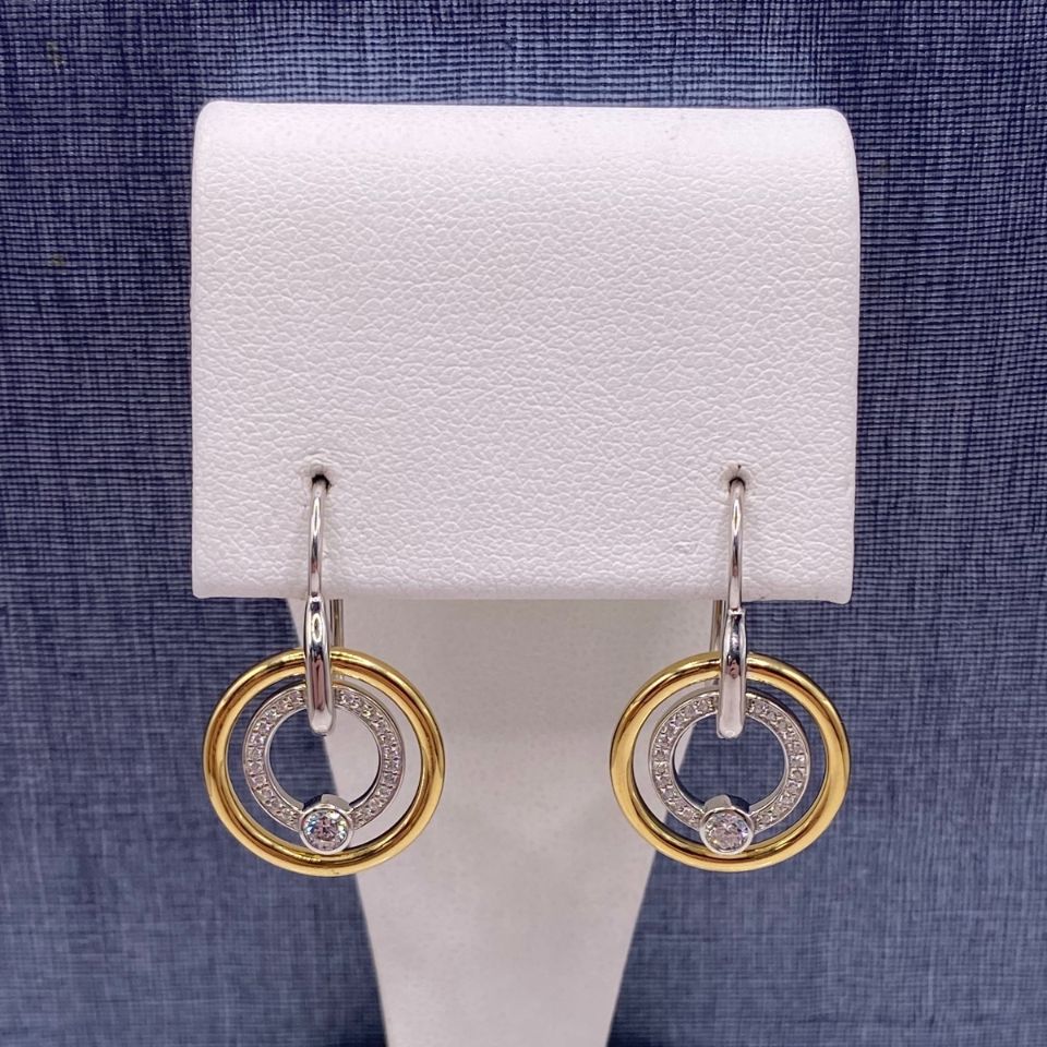 S/S, Gold Filled, Two Rings, White w CZ stone, Dangles, Z02458