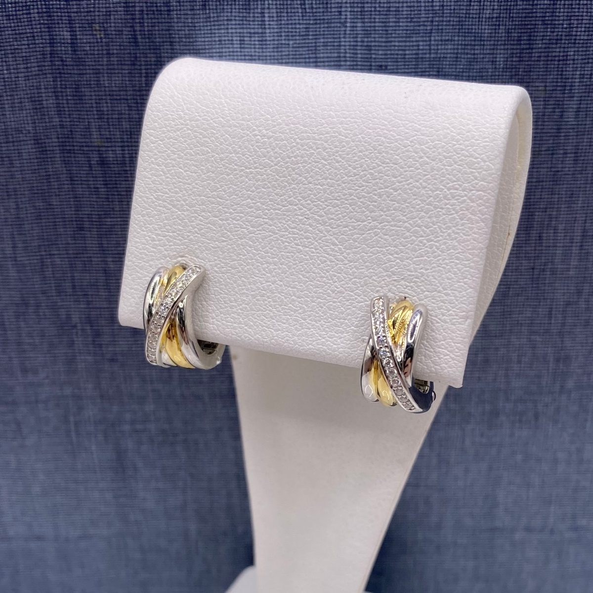S/S, Gold Plated, 4 Band Huggies, Thick, 6.2g, Crystals Prong Set, SS1280