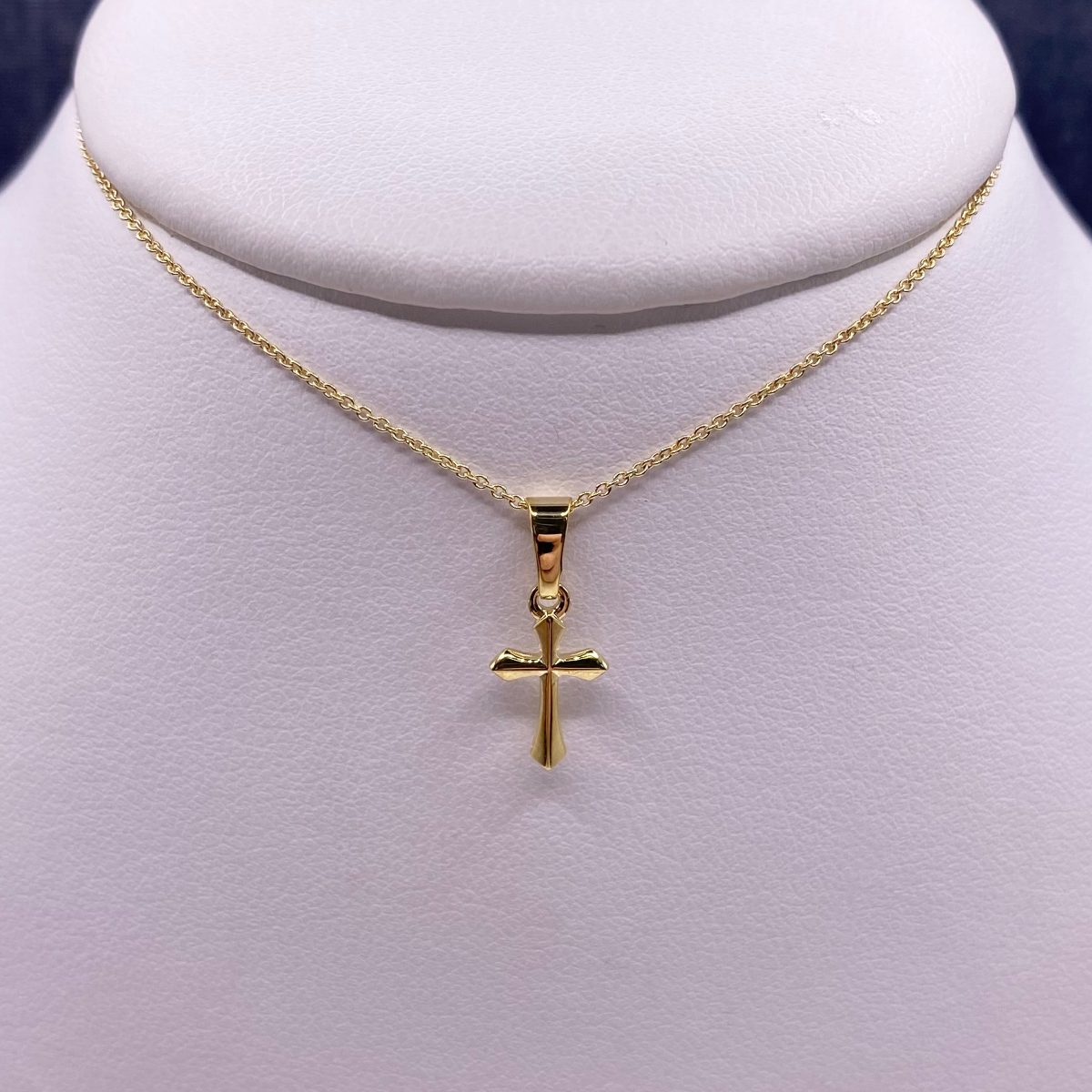 14ky, 9.5×6.5mm Cross, 16-18″ Cable Chain, H06615