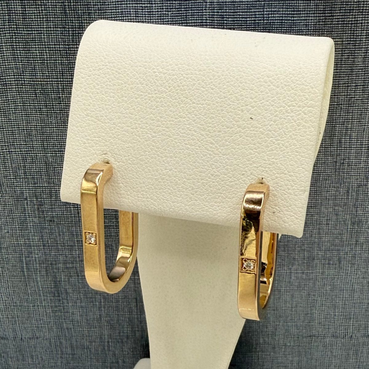14ky, Long Oval Shaped, 3/4 Hoops, Hollow, 2 Dias=0.04ctw, 3.2g, F10866